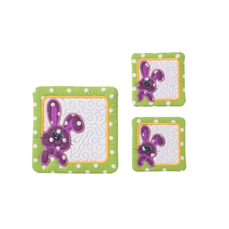 Σουβέρ Υφασμάτινα Πράσινα Κεντητά Κουνελάκια Σετ 3 τεμ