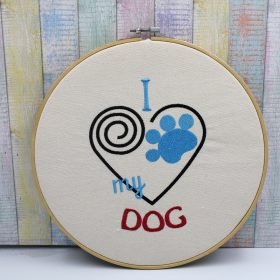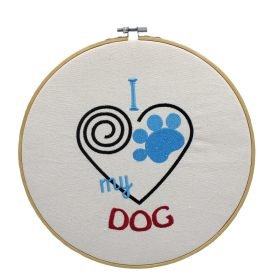 Διακοσμητικό τοίχου τελάρο Bamboo “Love My Dog” με κεντημένη δήλωση σε εκρού καμβά.