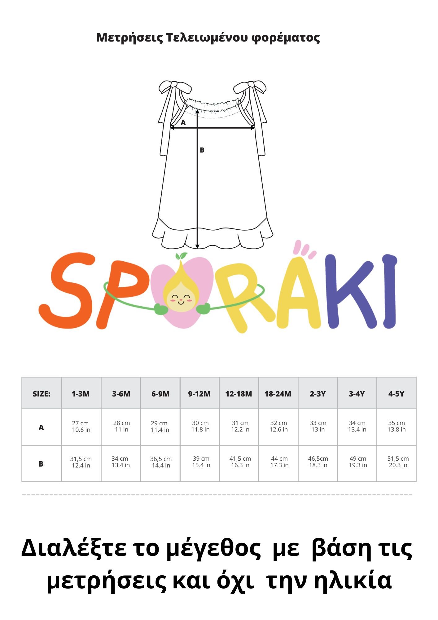 Διάλεξε το μέγεθος αφού συμβουλευτείς τον πίνακα μεγεθών που θα βρεις στις φωτο