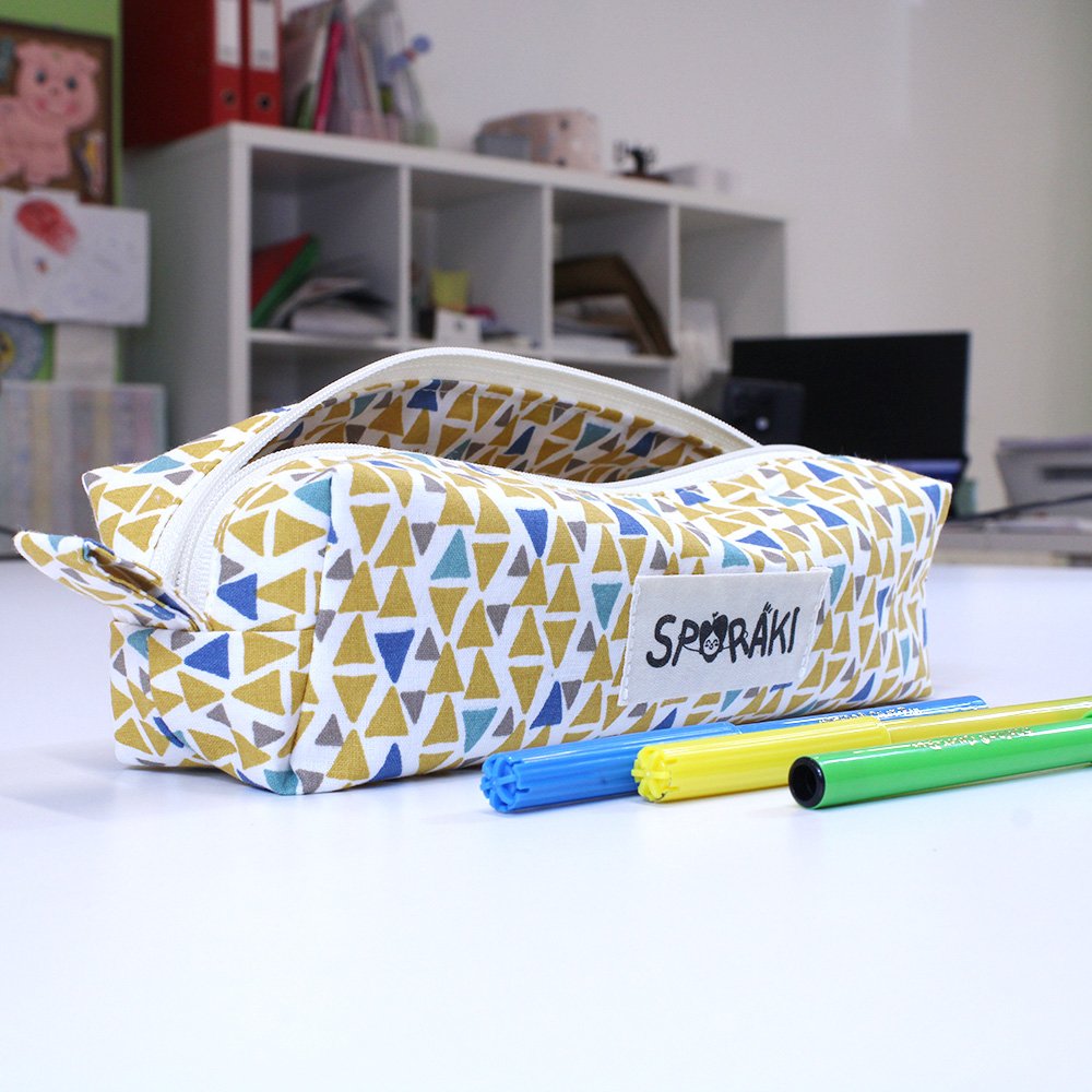 Κασετίνα Βαρελάκι από Βαμβακερό Ύφασμα Double Triangles
