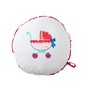 Λευκό βαμβακερό ύφασμα στολισμένο με απλικέ καρότσι και γεμισμένο με πολυέστερ 40cm.