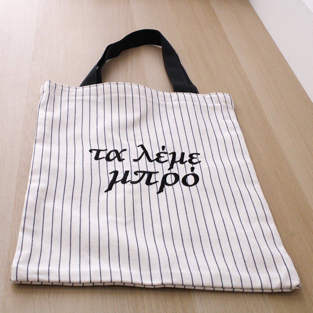 Minimal tote bag με statement κεντημένες λέξεις και χιούμορ που καταλαβαίνει μόνο όποιος ζει με Gen Z.