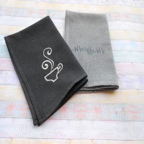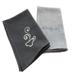 Πετσέτες κουζίνας “Coffee Heart Beat ” κεντημένες σετ 2 τεμαχίων και 39*58 εκατοστά, είναι 80% βαμβάκι και 20% πολυέστερ.