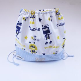 Την έφτιαξα από 100% βαμβακερό ύφασμα με μοτίβο robots και 100% βαμβακερό πικέ.