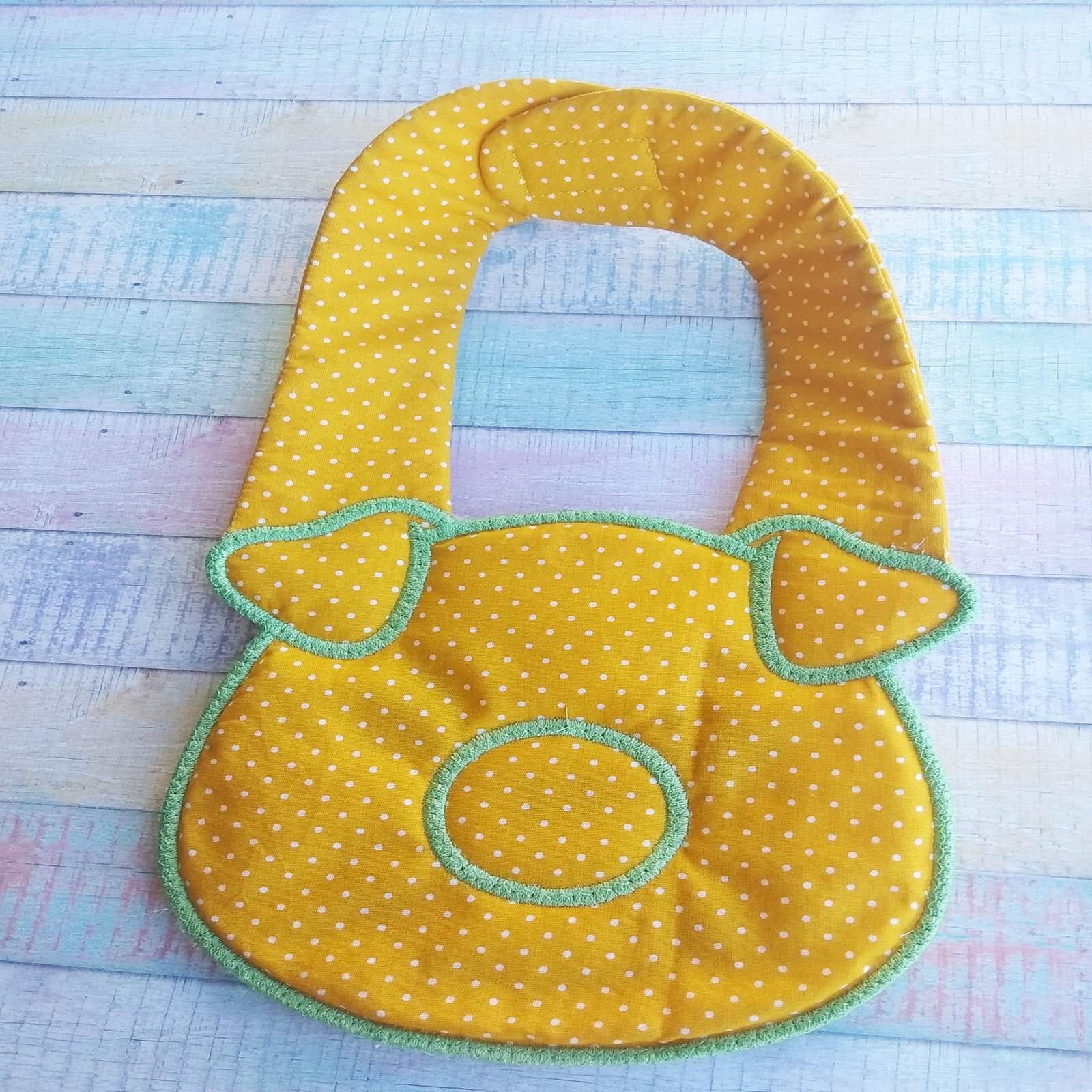 Σαλιάρα βρεφική γουρουνάκι κεντημένη στην μηχανή.