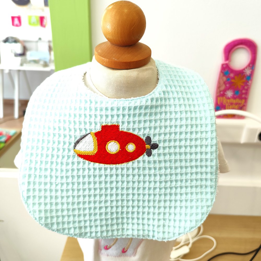 Η σαλιάρα κλείνει με πλαστικό κουμπάκι σε δύο θέσεις.