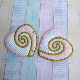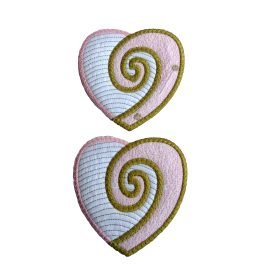 Σετ με 2 υφασμάτινα κεντητά σουβέρ σε σχήμα καρδιάς με σχέδιο koru, το οποίο συμβολίζει τη δύναμη και την αρμονία.