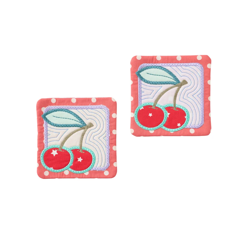 Υφασμάτινα Σουβέρ με απλικέ κεράσι σε χαρούμενα χρώματα.