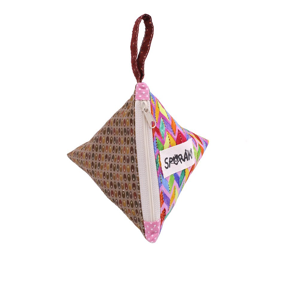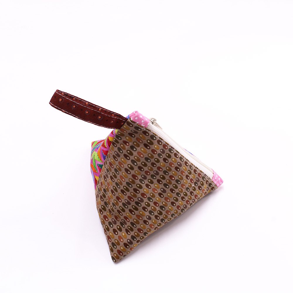 Χειροποίητο τριγωνικό πορτοφολάκι με 2 διαφορετικά βαμβακερά υφάσματα.