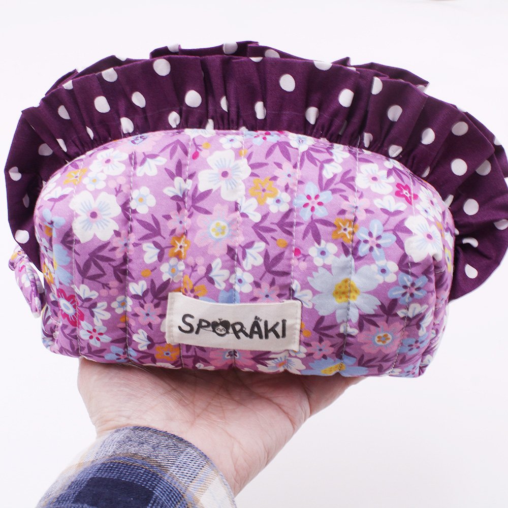 Το φτιάξαμε από προπλυμένο 100 % βαμβακερό ύφασμα με την τεχνική καπιτονέ και είναι φοδραρισμένο εσωτερικά .
