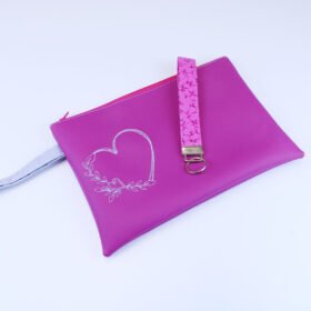 Το έφτιαξα με δερματίνη και το κέντησα με λουλουδένια καρδιά.