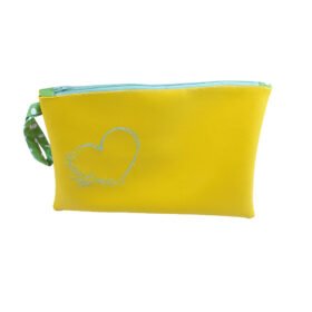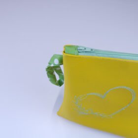 Το έφτιαξα με κίτρινη δερματίνη και το κέντησα με λουλουδένια καρδιά.
