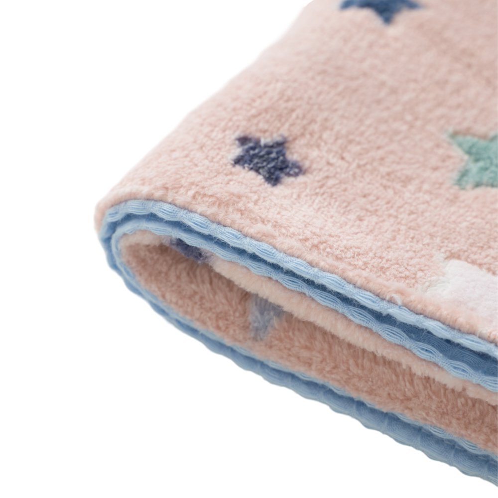 Είναι χειροποίητη και χρησιμοποιήσαμε δύο διαφορετικά υφάσματα. Από τη μία πλευρά, βάλαμε βαμβακερό πικέ με πιστοποίηση Oeko-Tex 100, και από την άλλη πλευρά γουνάκι πολυέστερ. Τα υφάσματά της είναι υποαλλεργικά και ασφαλή, κατάλληλα για το μωρό σας, ήδη από τους πρώτους μήνες ζωής τους. Με την διπλή της όψη, σας επιτρέπει να επιλέξετε την κατάλληλη πλευρά, ανάλογα με την εποχή και τη θερμοκρασία δωματίου.