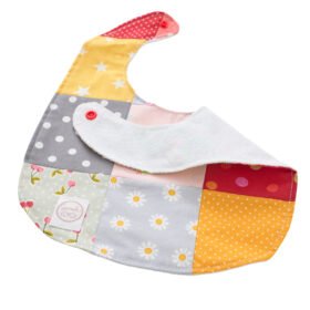 Την φτιάξαμε με βαμβακερό ύφασμα με την τεχνική patchwork από την μια πλευρά και με σελτέ από την άλλη. Ο σελτές με το πλαστικοποιημένο στρώμα του θα κρατήσει την υγρασία μακριά από τα ρούχα του μωρού σου.