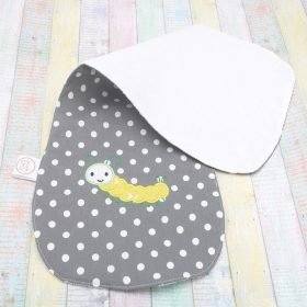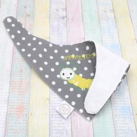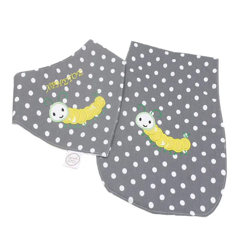 Βρεφικό σετ πανάκι ώμου και σαλιάρα, χρώματος γκρί με σαρανταποδαρούσα και την επιλογή του ονόματος.
