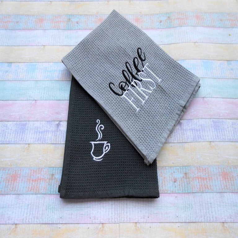 Σετ Πετσέτες Κουζίνας Κεντημένες “Coffee First”